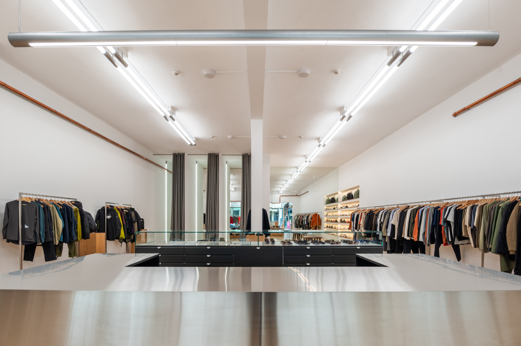 Illuminated by these ultra clean tubular LED fixtures designed by Solstice creates visual lines throughout the retail space along with carefully lit products utilising discrete LED strip lights creates the perfect separation between the products being sold and the environment surrounding.