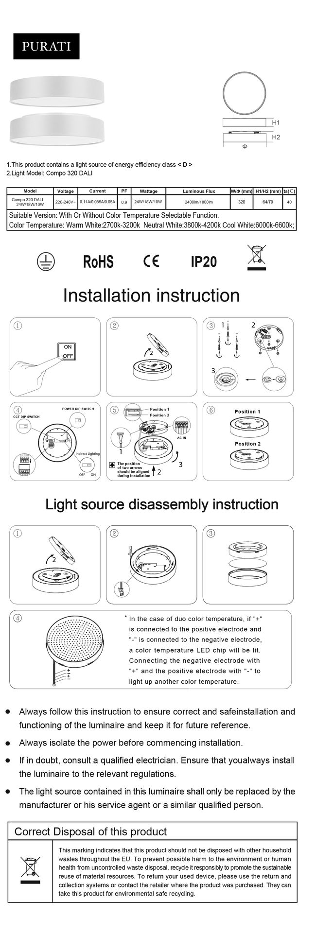 - CCT: 3000K/4000K Switch as standard, 6500K on request