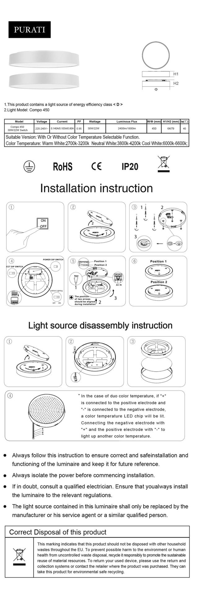 - CCT: 3000K/4000K Switch as standard, 6500K on request